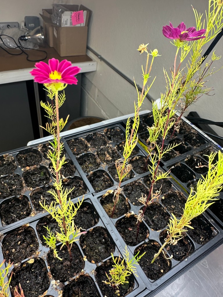- What’s been going well: We have flowers in our soil plants. We’ve been researching the photo period of cosmos flowers and why our soil flowers bloomed and editing our time-lapse videos.
