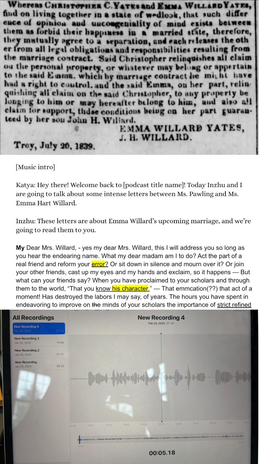 - Recorded the 2nd episode on Emma Willard’s letters